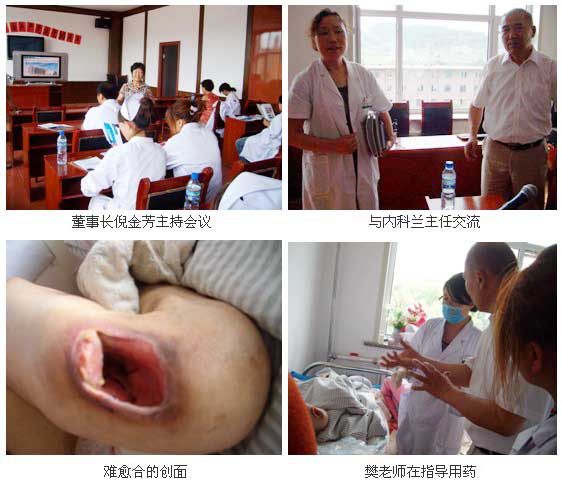 2011年7月10日下午,中國(guó)中西醫(yī)結(jié)合學(xué)會(huì)燒傷專(zhuān)業(yè)委員會(huì)的樊兆宗教授在喬巍的陪同下,來(lái)到了該醫(yī)院。對(duì)該院的外科、內(nèi)科急診科、老年病房的20多名醫(yī)護(hù)人員進(jìn)行了再生醫(yī)療技術(shù)的普及推廣工作,在培訓(xùn)中樊教授有針對(duì)性的對(duì)該院的特色科室老年病房中接收的褥瘡、糖尿病潰瘍患者的創(chuàng)面處理進(jìn)行了重點(diǎn)講解,指出了一定要規(guī)范用藥,保護(hù)好創(chuàng)面殘留的潛能再生細(xì)胞的重要性。學(xué)員們都能認(rèn)真的聽(tīng)課并記錄筆記。