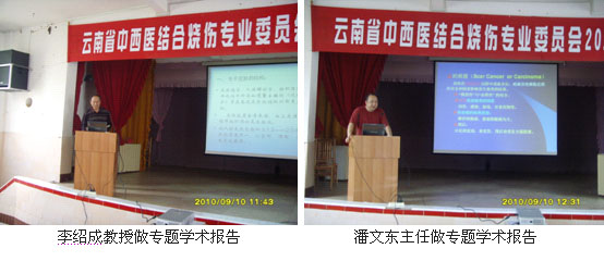 會議期間,云南省中西醫(yī)結(jié)合學會燒傷專委會主委、昆明醫(yī)學院第二附屬醫(yī)院李紹成教授、開遠59解放軍中心醫(yī)院燒傷整形科主任潘文東副主任醫(yī)師、云南大里祥云縣人民醫(yī)院外科主任李紹昌主任醫(yī)師等專家分別以“燒傷診斷與治療中的諸多問題之我見”、“疤痕癌的防治”、“壓力性潰瘍防治新進展”等課題進行了大會專題學術(shù)講座和學術(shù)交流。