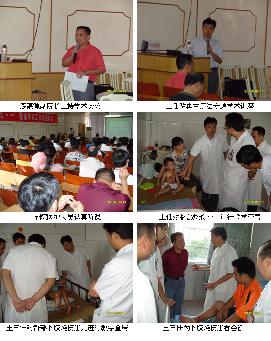 2010年7月17日上午8時(shí),王主任又應(yīng)該院副院長兼外三科(胸外燒傷科)臧德源副主任醫(yī)師的邀請,來到該院外三科與該科的專家和醫(yī)生就有關(guān)全身燒傷及創(chuàng)面感染的診斷、防治方法、營養(yǎng)支持、臟器功能保護(hù)、燒傷病房的管理、床單位的護(hù)理等問題進(jìn)行了廣泛而深入的溝通與交流。隨后,王主任又在臧德源副院長及外三科全體醫(yī)生的陪同下,深入燒傷病房,對在該科治療的10余例燒傷患者進(jìn)行了逐一教學(xué)查房和臨床指導(dǎo),臧德源副院長及外三科的專家、醫(yī)生紛紛表示,王主任這次蒞臨該院進(jìn)行臨床學(xué)術(shù)交流,不僅使該院治療燒傷的技術(shù)更加規(guī)范,而且又為該院引進(jìn)了治療難愈性創(chuàng)傷、潰瘍創(chuàng)面新技術(shù),相信這項(xiàng)技術(shù)必將使平南縣廣大的患者受益,并為該院帶來良好的社會(huì)效益和經(jīng)濟(jì)效益。
