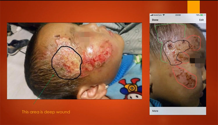 來(lái)自蒙古國(guó)家創(chuàng)傷與骨科研究中心的Tuya Kh醫(yī)生的演講題目為《濕潤(rùn)燒傷膏治療創(chuàng)面的臨床效果》(Clinical Efficacy of Moist Exposed Burn Ointment in the Treatment of Wound)。在演講中,Tuya Kh醫(yī)生分享了她針對(duì)膿腫、燒傷、糖尿病足等的治療經(jīng)驗(yàn)。特別值得一提的是,她分享了一名4歲患兒因疫情原因而接受醫(yī)生線上指導(dǎo),自行在家中使用濕潤(rùn)燒傷膏治療的情況。該患兒的創(chuàng)面愈合良好,未產(chǎn)生任何瘢痕,充分體現(xiàn)了濕潤(rùn)燒傷膏換藥的易操作性。