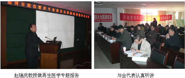 鄭貴新院長(zhǎng)發(fā)表了熱情洋溢地講話,他向參加學(xué)術(shù)會(huì)議的全體代表介紹了該院的主要以職業(yè)病防治、燒傷整形治療和醫(yī)學(xué)康復(fù)為三大特色,其中職業(yè)病防治,燒傷整形專業(yè)為淄博市重點(diǎn)學(xué)科。鄭貴新院長(zhǎng)還介紹了該院在2010 年8月份至10月份先后收治了四批31名燒傷患者,均采用再生醫(yī)學(xué)技術(shù)為患者進(jìn)行治療,經(jīng)過3個(gè)月燒傷整形科全體員工的不懈努力,高質(zhì)量、高水平地完成了救治任務(wù),受到了市、區(qū)、各級(jí)領(lǐng)導(dǎo)和市衛(wèi)生局的好評(píng)。鄭院長(zhǎng)最后講到:全市燒傷整形高級(jí)學(xué)術(shù)會(huì)議在我院召開并增掛再生醫(yī)學(xué)治療的匾牌是我院的大喜事,我堅(jiān)信此次會(huì)議必將成為我市燒傷外科發(fā)展過程中的一個(gè)里程碑。