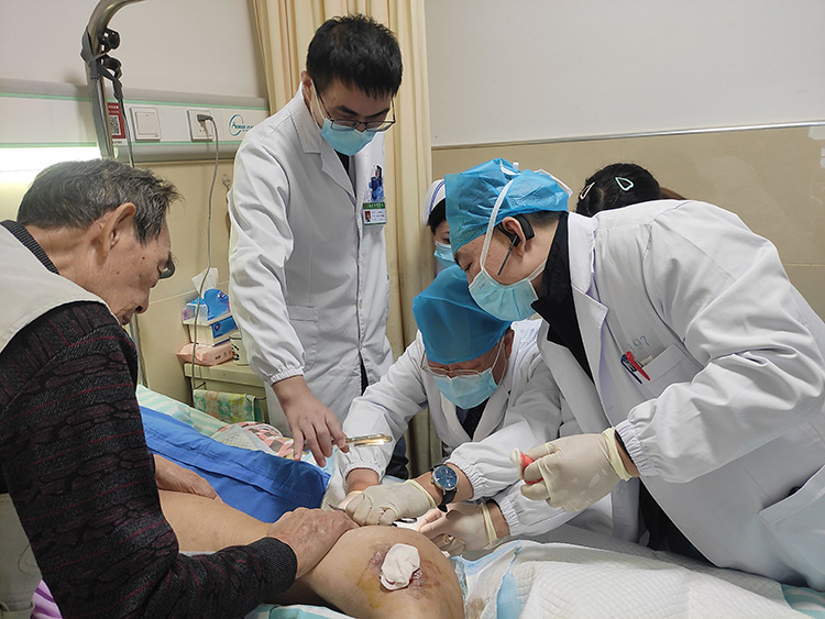 10月22日,應(yīng)海安市中醫(yī)院之邀,《中國(guó)燒傷創(chuàng)瘍雜志》常務(wù)編委、燒傷創(chuàng)瘍?cè)偕t(yī)療技術(shù)臨床專(zhuān)家趙瑞慶,在該院會(huì)診了2例慢創(chuàng)病人(下肢外傷內(nèi)固定術(shù)后鋼板外露、多發(fā)性壓迫性潰瘍)。之后在科內(nèi)進(jìn)行了《再生技術(shù)治療十大慢創(chuàng)疾病》的培訓(xùn),耐心地解答了大家提出的諸多臨床問(wèn)題,承諾踐行走基層活動(dòng)得到當(dāng)?shù)蒯t(yī)護(hù)人員的一致好評(píng)!