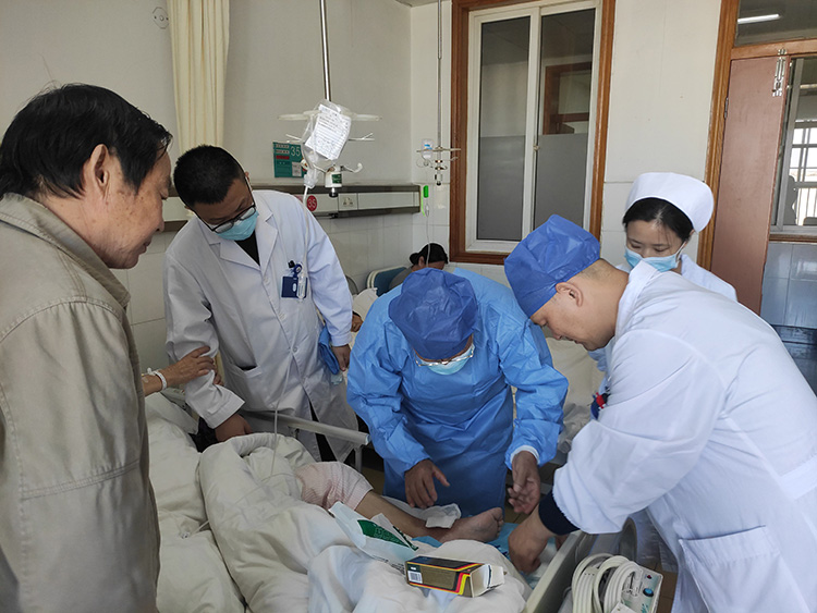 10月22日,應(yīng)鳳凰縣民族中醫(yī)院陳彥均醫(yī)生的邀請(qǐng),《中國(guó)燒傷創(chuàng)瘍雜志》編委、燒傷創(chuàng)瘍?cè)偕t(yī)療技術(shù)臨床專(zhuān)家金黨軍,到醫(yī)院會(huì)診一例壞死性筋膜炎患者并做了學(xué)術(shù)交流,金教授詳細(xì)講解了再生醫(yī)療技術(shù)清創(chuàng)原則和規(guī)范作用,并贊揚(yáng)了陳醫(yī)生不辭辛苦積極在基層應(yīng)用和宣傳再生醫(yī)療技術(shù)造福湘西百姓的精神,得到了在場(chǎng)醫(yī)護(hù)人員和患者的一致認(rèn)可。