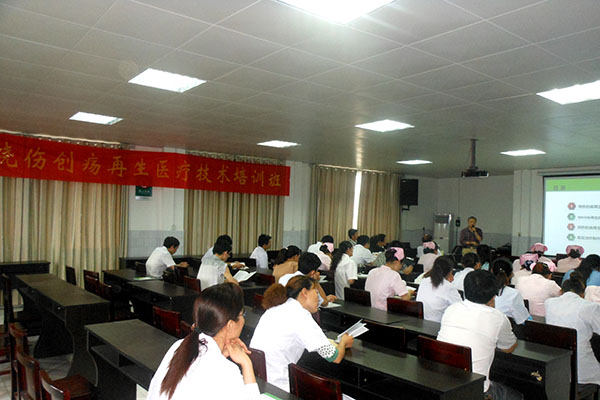 2015年6月16日,應(yīng)鐘祥市柴湖鎮(zhèn)中心衛(wèi)生院張?jiān)洪L(zhǎng)的邀請(qǐng),中國(guó)中西醫(yī)結(jié)合學(xué)會(huì)燒傷專業(yè)委員會(huì)常委、《中國(guó)燒傷創(chuàng)瘍雜志》常務(wù)編委金黨軍教授,對(duì)全院醫(yī)護(hù)人員進(jìn)行了“燒傷創(chuàng)瘍?cè)偕t(yī)療技術(shù)臨床應(yīng)用”的培訓(xùn)。