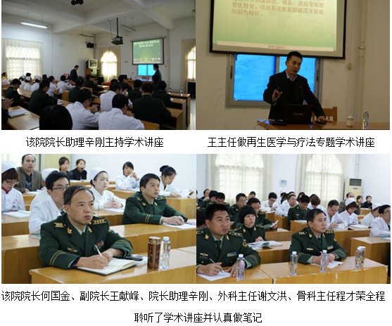 學(xué)術(shù)講座于當(dāng)日下午3時(shí)30分在該醫(yī)院會(huì)議室舉行,學(xué)術(shù)活動(dòng)由該醫(yī)院院長(zhǎng)助理辛剛主持,在專題學(xué)術(shù)講座中,王主任向?qū)W員們介紹了再生復(fù)原療法的概念、闡述了皮膚原位再生醫(yī)療技術(shù)原理、與傳統(tǒng)醫(yī)學(xué)療法相比再生醫(yī)療技術(shù)的優(yōu)越性,以及近期在英國外科雜志及國際燒傷雜志發(fā)表的有關(guān)“磺胺嘧啶銀及含銀敷料用于創(chuàng)傷(含燒傷)創(chuàng)面,造成創(chuàng)面愈合延遲、增加疼痛和感染率”等最新觀點(diǎn);并著重講解了濕潤暴露療法、半暴露療法和包扎療法的操作方法及要點(diǎn);通過臨床病例圖片側(cè)重分析褥瘡、典型糖尿病足、下肢潰瘍等外科常見創(chuàng)傷治療前后過程。重點(diǎn)講述了再生療法在糖尿病足等難愈性創(chuàng)傷治療新進(jìn)展的情況。通過視頻講述了規(guī)范的換藥方法。治療后理想的愈合效果讓學(xué)員們對(duì)再生醫(yī)療技術(shù)有了更深刻的認(rèn)識(shí),得到了在場(chǎng)領(lǐng)導(dǎo)及學(xué)員的認(rèn)可。