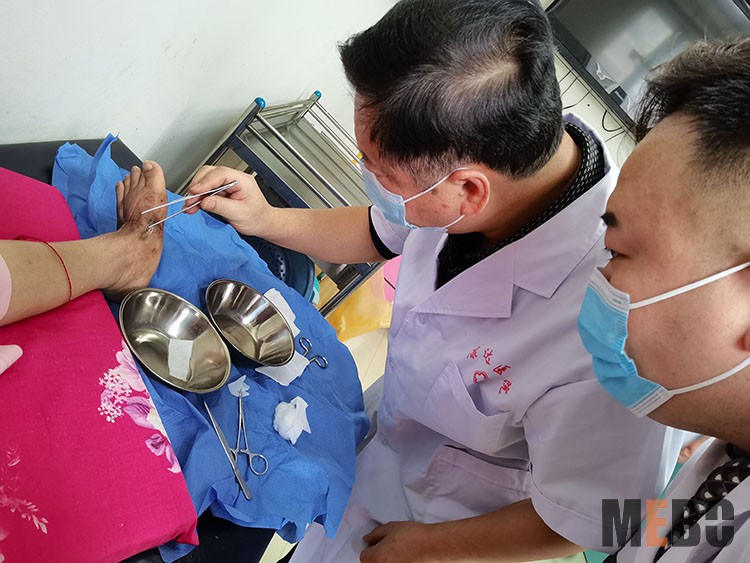 2021年11月9日,中西醫(yī)結合學會燒傷瘡瘍專業(yè)委員會李志剛主任來到中信中心(新里程)醫(yī)院顯微外科與全院專家一起討論會診一例因病致貧的糖足患者,利用多學科結合MEBT/MEBO對患者進行救助,旨在攜手為糖尿病足患者保肢而一起努力。