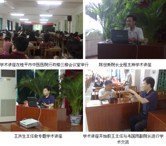 桂平市地處廣西中部,人口約180多萬,共有29個鄉(xiāng)鎮(zhèn),是全國第三大縣級市,桂平中醫(yī)醫(yī)院也是全國示范中醫(yī)院。此次學(xué)術(shù)活動得到了該院領(lǐng)導(dǎo)班子的高度重視,當日下午15時,桂平市中醫(yī)醫(yī)院行政樓3樓會議室座無虛席,該院院長陳世新親自全程主持會議,副院長韋國雨、韋月榮,黨委副書記黎德琳、醫(yī)務(wù)科覃麗貞、張琪科長、大骨科兼骨傷一區(qū)主任黎小琳、骨傷二區(qū)主任韋振、外科主任黎海等領(lǐng)導(dǎo)都出席了會議,全院各科室除值班醫(yī)護人員外,共有180余人到會參加王主任的專題講座。