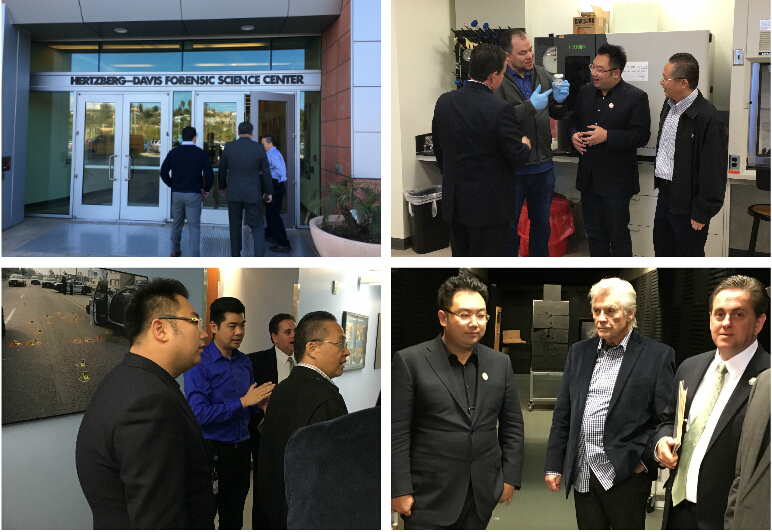 午餐后,戈麥斯校長(zhǎng)親自駕駛校園電瓶車帶徐鵬總裁和來賓來到美國(guó)除聯(lián)邦調(diào)查局以外最大的法醫(yī)學(xué)中心-由洛杉磯郡警和市警合作的赫茲伯格-戴維斯法醫(yī)學(xué)中心參觀。該中心的毒理實(shí)驗(yàn)室主任和器械主管警官全程引領(lǐng)和講解,該中心是美劇CSI(犯罪現(xiàn)場(chǎng)調(diào)查)鑒證的技術(shù)支持。