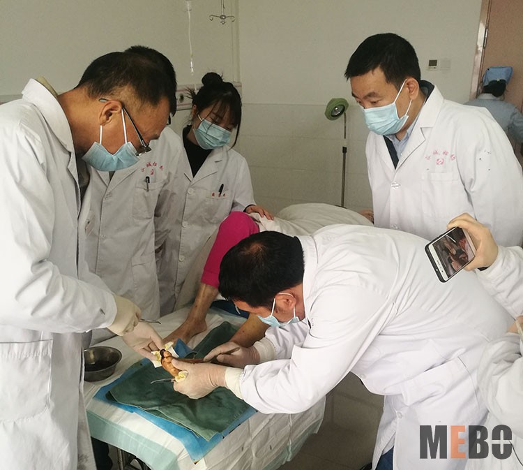 11月6日,鶴煤總醫(yī)院內(nèi)分泌科楊紅玉副主任醫(yī)師受南樂縣中興醫(yī)院邀請會診糖足患者,楊大夫查閱病例后結(jié)合患者全身檢查結(jié)果現(xiàn)場交流、探查竇道、切開創(chuàng)面、減脹引流、修剪腔內(nèi)壞死組織,最后運用再生醫(yī)療技術(shù)油紗填塞無菌包扎。通過再生醫(yī)療技術(shù)的治療,希望更多的患者減少糖尿病并發(fā)癥的困惑。
