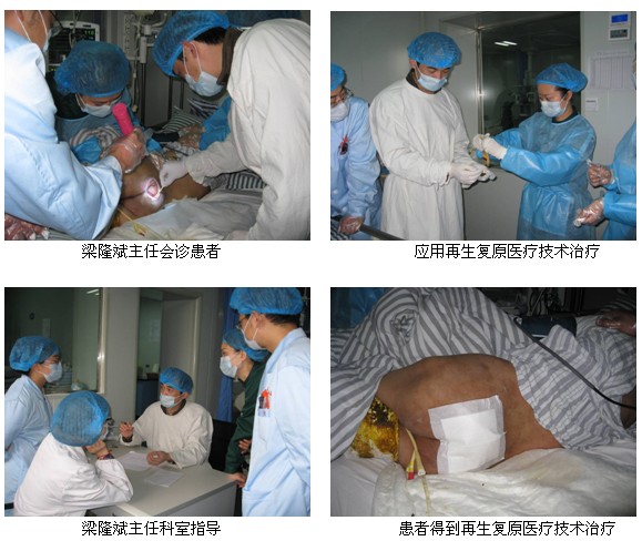 通過這次學(xué)術(shù)交流取得了很好的反響,會后很多參會者主動向梁主任咨詢再生復(fù)原醫(yī)療技術(shù)相關(guān)事宜,梁主任都詳細地一一做答。其中成都市老年病醫(yī)院ICU病房有一例特大褥瘡病例,會后也向梁主任進行咨詢具體的治療方法,并且急切邀請梁主任到該院會診。4月19日,梁主任在四川省中西醫(yī)結(jié)合學(xué)會燒傷專委會朱春紅同志的陪同下到該院會診指導(dǎo)。梁主任為科室人員示范了規(guī)范的換藥原則和技巧,強調(diào)再生復(fù)原醫(yī)療技術(shù)規(guī)范治療的要點,并就再生復(fù)原醫(yī)療技術(shù)在臨床的應(yīng)用再次向該科室人員進行了詳細地講解。