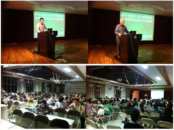 下午的學術講座由該院副院長謝漢剛主持,其中外科主任黃林新、骨科主任施春帆等院方領導也列席聽講。專題學術講座中,王主任首先向與會的專家介紹了著名生命科學家、醫(yī)學家、人體再生復原科學的創(chuàng)立者、再生復原療法的發(fā)明人徐榮祥教授近年來在再生醫(yī)學領域所取得的重大實驗及臨床研究成果,而后王主任結合了大量的臨床病例圖片及錄像資料,向醫(yī)生們介紹了燒傷濕潤暴露療法,闡述了燒傷皮膚原位再生醫(yī)療技術原理,與傳統(tǒng)醫(yī)學療法相比再生醫(yī)療技術的優(yōu)越性等;著重講解了暴露療法、半暴露療法和包扎療法的操作方法及要點;通過臨床病例圖片側重分析褥瘡、典型糖尿病足、下肢潰瘍等外科常見創(chuàng)傷治療前后過程。重點講述了再生療法在各種難愈性創(chuàng)面治療新進展的情況。最后還通過視頻講述了微粒皮種植技術的臨床操作。各種創(chuàng)面治療后理想的愈合效果讓醫(yī)生們對再生醫(yī)療技術有了更深刻的認識,得到了在場領導及大家的認可。