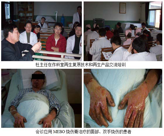 分別與以上科室主任進(jìn)行了再生復(fù)原技術(shù)的交流,介紹了與再生復(fù)原技術(shù)配套的再生產(chǎn)品。重點(diǎn)介紹了新一代醫(yī)用功能性敷料美寶創(chuàng)瘍貼獨(dú)特的網(wǎng)中網(wǎng)結(jié)構(gòu)和三隔離-呼吸作用及創(chuàng)瘍貼治療創(chuàng)瘍的概念。再生醫(yī)學(xué)的“創(chuàng)瘍”指一切創(chuàng)傷和潰瘍的總和。強(qiáng)調(diào)“創(chuàng)”和“瘍”的兩個(gè)概念?!皠?chuàng)”表示開發(fā)性創(chuàng)傷,如:擦傷、撕脫傷、開放性骨折、刀傷等?!隘儭敝搁_放性創(chuàng)面發(fā)生的感染和潰瘍。