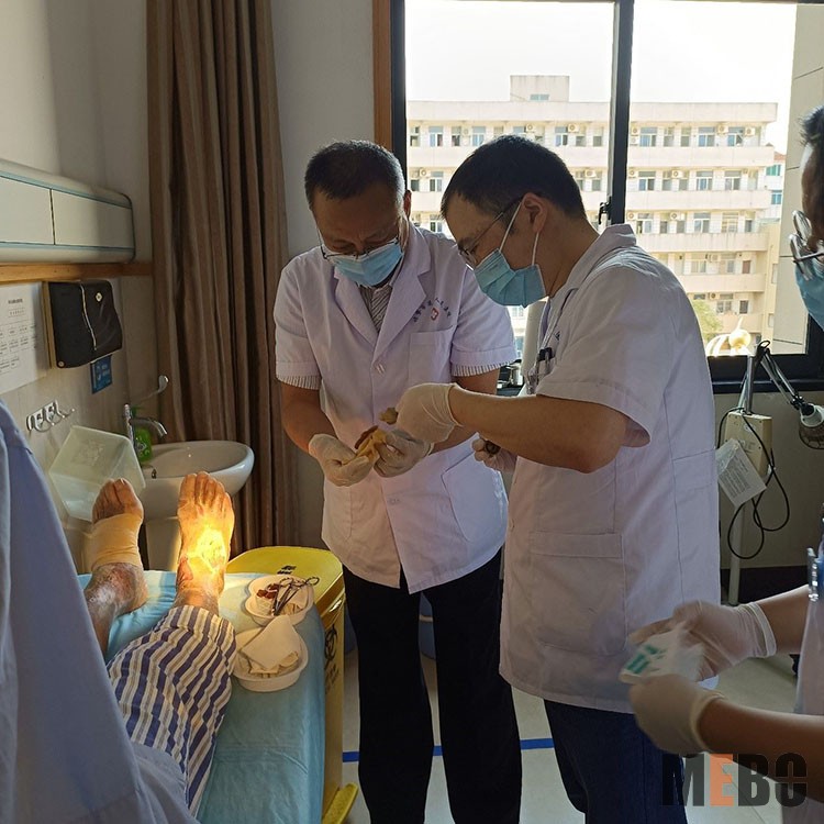 2021年6月28日,中國中西醫(yī)結(jié)合學(xué)會燒傷專業(yè)委員會張強主任應(yīng)邀前往宿州市煤電集團總醫(yī)院,對燒傷科糖尿病足、下肢慢性潰瘍等患者進行手術(shù)清創(chuàng),并為科室人員示范再生醫(yī)療技術(shù)臨床規(guī)范換藥,并進行了深入交流,得到醫(yī)護人員和患者的高度贊賞。