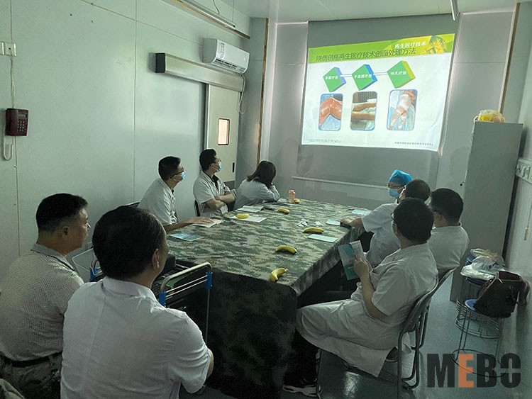 2021年5月28日,中國(guó)中西醫(yī)結(jié)合學(xué)會(huì)燒傷專業(yè)委員會(huì)醫(yī)療部專家張強(qiáng)主任,受邀來(lái)到武警湖北省總醫(yī)院普外科,開展了“再生醫(yī)療技術(shù)在肛腸疾病治療中的創(chuàng)新應(yīng)用”的專題講座。課上張主任同醫(yī)師們講解了再生醫(yī)療技術(shù)的作用原理與規(guī)范處理原則,分享了再生醫(yī)療技術(shù)在肛腸疾病相關(guān)性創(chuàng)瘍和切口感染等難愈性創(chuàng)面治療成功的經(jīng)驗(yàn),并同王主任就技術(shù)細(xì)節(jié)和科室建設(shè)作了交流!接下來(lái),張主任受邀繼續(xù)到武昌醫(yī)院內(nèi)分泌科會(huì)診了一例基礎(chǔ)病較多嚴(yán)重的壓瘡患者,張主任實(shí)操講解與示范創(chuàng)面黑痂及濃性分泌物如何清創(chuàng)、制作油紗、規(guī)范換藥包扎療法。在張主任指導(dǎo)下,護(hù)理老師們學(xué)到了很多換藥技巧。會(huì)診后張主任同黎主任及護(hù)理老師深入交流與詳細(xì)講解運(yùn)用再生醫(yī)療技術(shù)在臨床中差異化換藥問(wèn)題,讓大家對(duì)技術(shù)有了新的認(rèn)知!