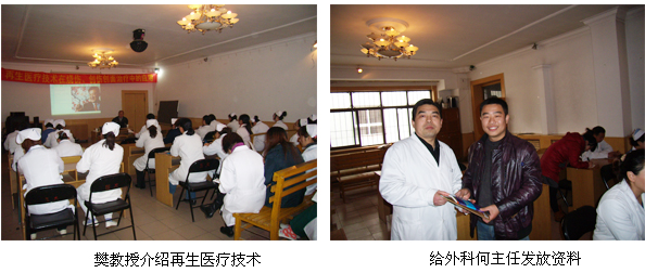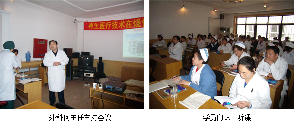 學(xué)術(shù)交流會(huì)議由該院醫(yī)務(wù)科組織,外科何主任主持。參加會(huì)議的科室有骨科、普外科、燒傷科、婦產(chǎn)科、內(nèi)科等相關(guān)科室的主任和醫(yī)務(wù)人員,共計(jì)50余人。樊教授在授課時(shí),通過多媒體介紹了徐榮祥教授發(fā)明的皮膚再生復(fù)原醫(yī)療技術(shù)在世界生命科學(xué)前沿的地位及目前的科學(xué)成果,并通過大量臨床典型的病例圖片,講解了不同病例的不同治療方法及換藥處理,本次授課內(nèi)容涵蓋了多個(gè)科室再生醫(yī)療技術(shù)的應(yīng)用,其中包括燒傷燙傷的治療,創(chuàng)傷創(chuàng)面的治療,褥瘡及慢性潰瘍的治療,糖尿病足的治療等。與會(huì)的醫(yī)生聽后感覺耳目一新,受益非淺。他們對(duì)再生醫(yī)療技術(shù)治愈的棘手病例更是稱贊不已,大家互相交流臨床經(jīng)驗(yàn),現(xiàn)場學(xué)習(xí)氣氛非常濃郁。此次培訓(xùn)班圓滿結(jié)束。