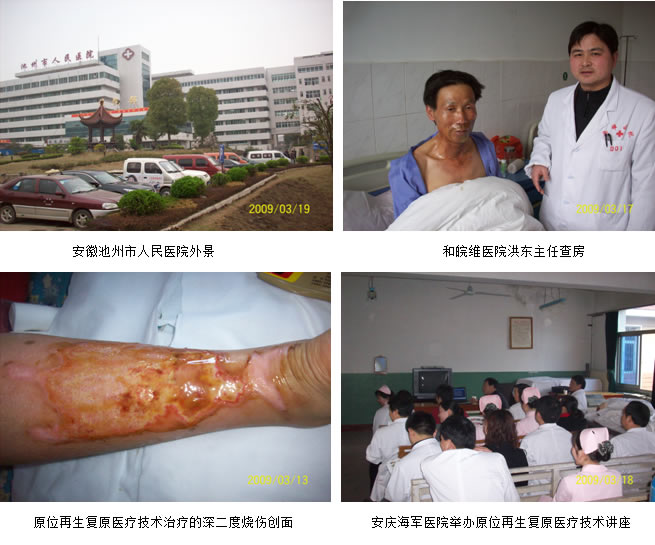 杜主任每到一家醫(yī)院利用電腦幻燈片資料詳細(xì)地介紹了皮膚原位再生復(fù)原醫(yī)療技術(shù)的臨床應(yīng)用及國內(nèi)外推廣情況,以及臨床療效和最新研究成果。并介紹了5.12四川大地震中應(yīng)用皮膚原位再生復(fù)原醫(yī)療技術(shù)及皮膚再生復(fù)原醫(yī)療新產(chǎn)品速愈貼的臨床療效,引起了廣泛的社會效應(yīng),黨和國家給予肯定和表彰。在安慶海軍116醫(yī)院舉辦的外一、外二、骨科學(xué)術(shù)講座中收到良好效果,醫(yī)護(hù)人員積極認(rèn)真參加學(xué)習(xí),并先后和醫(yī)務(wù)處胡以法主任(蒹外科主任)、劉永慶主任、王啟懷主任進(jìn)行座談交流。