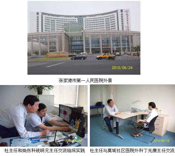中國中西醫(yī)結合學會燒傷專業(yè)委員會常委、中國燒傷創(chuàng)瘍雜志常務編委、北京燒傷創(chuàng)瘍研究所臨床部杜福勤主任和學會駐江蘇辦事處周園園同志于2010年6月18日~25日,一同走訪了無錫市濱湖區(qū)人民醫(yī)院外科、錫山區(qū)東亭社區(qū)醫(yī)院、宜興市人民醫(yī)院燒傷科、蘇州市蘇大附屬醫(yī)院整形科、蘇州市立醫(yī)院北區(qū)(蘇州市三院)燒傷科、常熟市莫城社區(qū)醫(yī)院、張家港市第一人民醫(yī)院燒傷科,同時走訪了兩家醫(yī)藥公司和五家終端大藥房。