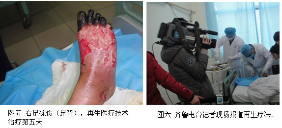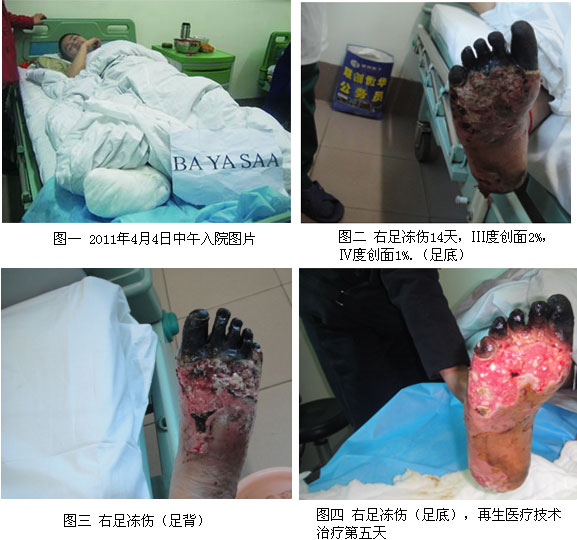 蒙古國20歲小伙子巴亞薩(音譯)是一名大二學(xué)生,2011年3月22日,蒙古下了一場大雪,巴亞薩在戶外做事時右腳被凍傷。12天后,巴亞薩的腳掌、腳背潰爛,5個腳趾都變成黑色,當(dāng)?shù)蒯t(yī)生建議截肢,巴亞薩家人表示不能接受。巴亞薩有一位親戚在中國讀博士,2011年4月3日,她通過“王廣順好大夫在線”網(wǎng)站得知106醫(yī)院正在推廣應(yīng)用再生醫(yī)療技術(shù),能治療小伙子的右腳,可以不截肢。4月4日早上,巴亞薩在母親陪同下從烏蘭巴托乘飛機來到濟南106醫(yī)院。在各媒體熱心幫助下蒙語翻譯幫巴亞薩辦理了住院手續(xù),當(dāng)天王廣順教授應(yīng)用濕潤燒傷膏及創(chuàng)瘍貼為其換藥治療,患者疼痛明顯減輕。第二天換藥時,肉芽創(chuàng)面由紅轉(zhuǎn)淡,創(chuàng)面液化物增多。第三天換藥時見創(chuàng)面滲出物減少。第四天已見皮島長出。第五天,Ⅳ度創(chuàng)面壞死組織部分分離,傷口已明顯縮小。通過王廣順教授的精心治療下,現(xiàn)在巴亞薩的傷情已得到了好轉(zhuǎn),右腳小踇趾已恢復(fù)血運,其他4個腳趾仍是黑色的。王教授按干細(xì)胞周期為他制定了四周的恢復(fù)方案,如果治療順利,巴亞薩可以不用截肢,一月左右就可回國。(報道再續(xù))