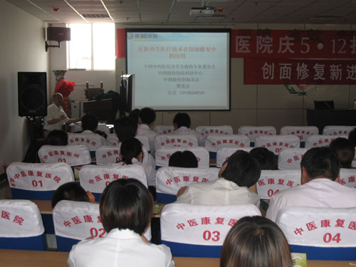 5月18日下午2點30分,中國中西醫(yī)結(jié)合學會燒傷專業(yè)委員會常委、《中國燒傷創(chuàng)瘍雜志》常務(wù)編委、中國燒傷創(chuàng)瘍科技中心醫(yī)療部主任樊兆宗教授在該院進行了燒傷創(chuàng)瘍再生技術(shù)講座,重點講述了原位再生復(fù)原技術(shù)的臨床操作規(guī)范;原位再生復(fù)原技術(shù)在創(chuàng)傷、褥瘡、潰瘍等多學科的運用;并從燒傷創(chuàng)面治療難題的再生復(fù)原機理、解決深度創(chuàng)面的愈合難題機理、創(chuàng)傷創(chuàng)面治療難題的再生復(fù)原機理、糖尿病潰瘍的再生復(fù)原機理、組織肢體缺損的復(fù)原機理;再生療法復(fù)原潰瘍和衰老器官、皮膚器官原位再生復(fù)原機理和效果;胃腸再生復(fù)原的效果等八個方面對人體器官原位再生復(fù)原技術(shù)的機理進行了深入淺出的講解。