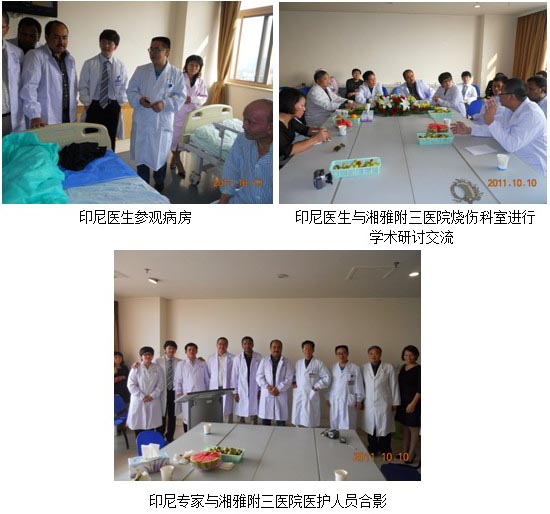 2011年10月8日,國(guó)慶長(zhǎng)假后的第一周,湖南省三家基地醫(yī)院迎來(lái)了由四名整形燒傷科醫(yī)生組成的印尼再生醫(yī)學(xué)團(tuán)隊(duì),此次赴華參觀學(xué)習(xí)的印尼團(tuán)隊(duì)由美寶印尼Dr. Doni Azmar 醫(yī)生帶隊(duì),印尼棉蘭市亞當(dāng)馬利克醫(yī)院整形外科主治醫(yī)師Dr. Utama Abdi Tarigan,印尼爪哇島西部城市萬(wàn)隆市阿桑薩迪金醫(yī)院的整形外科主治醫(yī)師Dr. Ali Sundoro,印度尼西亞蘇拉威西島西南部港市孟加錫市的斯特拉馬瑞斯醫(yī)院的整形外科主治醫(yī)師Dr. Leonardo Rieuwpassa。印尼自2006年來(lái)與國(guó)際部配合及國(guó)內(nèi)支持下多次組織國(guó)內(nèi)外學(xué)習(xí)燒傷再生醫(yī)學(xué)療法,自2006年至今一直致力于再生醫(yī)學(xué)在印尼的推廣和繼續(xù)教育項(xiàng)目,曾在去年、今年7月份分別赴四川、廣州等多家基地醫(yī)院學(xué)習(xí)了再生醫(yī)療技術(shù),此次是第三次正式來(lái)華學(xué)習(xí),幾名醫(yī)生也都有較為豐富的再生醫(yī)學(xué)臨床應(yīng)用經(jīng)驗(yàn),并成功救治了多例燒傷患者。此行的主要目的在于對(duì)再生醫(yī)學(xué)臨床應(yīng)用規(guī)范以及效果進(jìn)行一次更為深入廣泛的學(xué)習(xí)以及參觀。